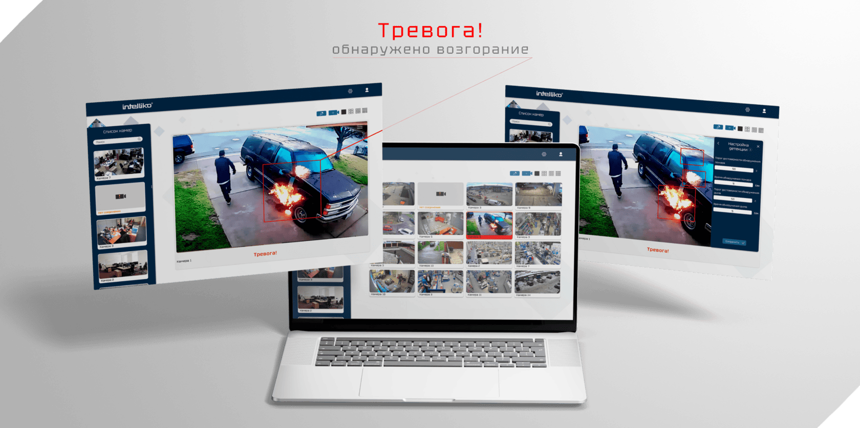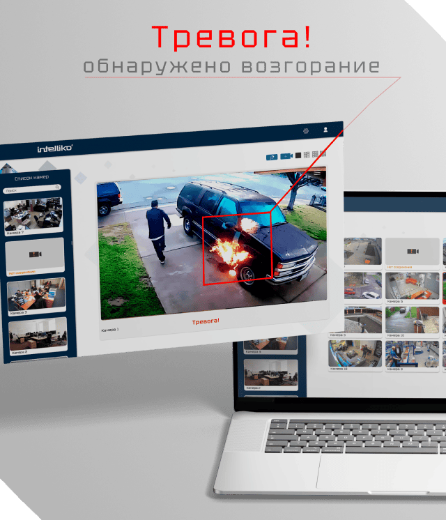 Для компании Intelliko мы разработали передовое программное обеспечение «Аналитика огня и дыма». Система обеспечивает точность детекции на уровне 95 %, что делает её одной из лучших решений на рынке России. Наше ПО интегрировано с камерами безопасности Intelliko и поддерживает подключение по протоколам ONVIF, RTSP и HTTP, обеспечивая гибкость и простоту настройки.